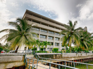 It sits on a coastline, with a view of the serene ocean. It enjoys a strategic location within proximity to major business hubs, financial institutions, government offices, and upscale residential areas. Its central location provides easy access to transportation networks and amenities, making it a convenient choice for businesses and corporate organizations alike
