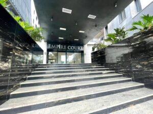 Empire Court stands elegantly in the heart of upscale Ikoyi, Lagos. This twin high-rises emerge from the bustling streets of Ikoyi- it’s sleek façade, adorned with it’s lovely designs, caught by the sunlight, casting elongated shadows on the pavement below. 9 floors soar, defying gravity with elegance. Each floor whispers tales of opulence, where residents revel in the lap of luxury. The split-level penthouse apartments stands tall, their panoramic windows framing breathtaking views of the city.