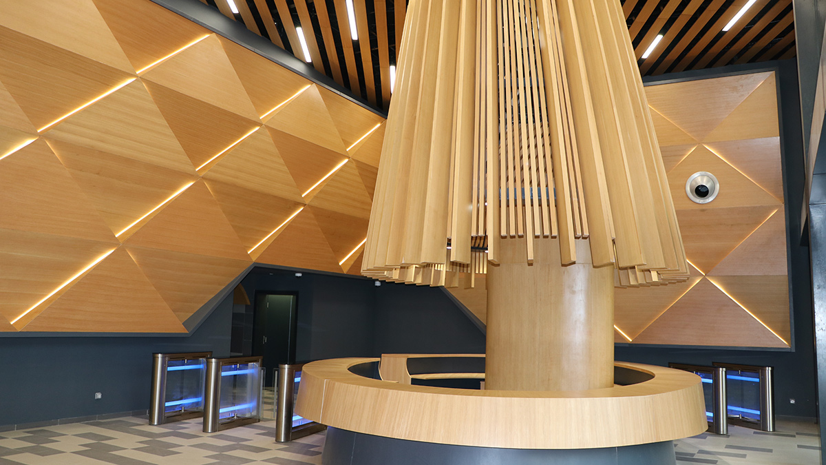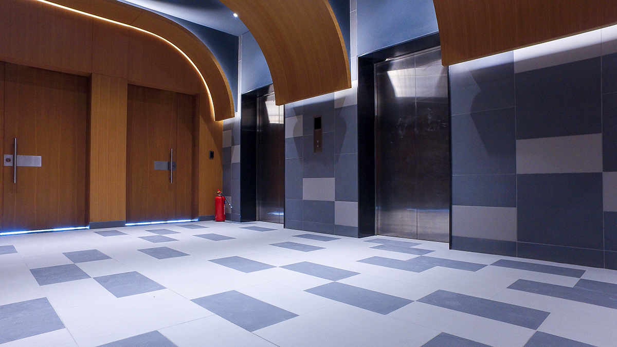 The entrance to the building opens on a double-height, glazed, atrium lobby. The ceilings open up into a grand entrance of herbal timber panels and Italian flooring, combining superb fashion and warmth, whilst welcoming visitors into the foyer.